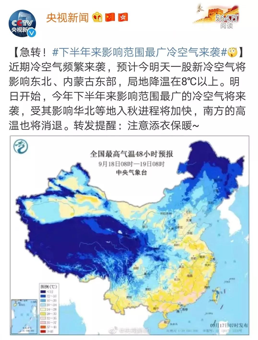 1、气象部门发布的最新冷空气消息报告